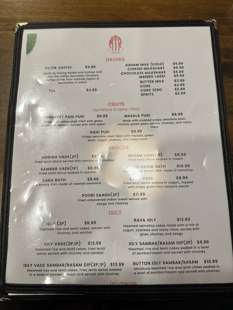 MTR - Mavalli Tiffin Menu (Update 2025)